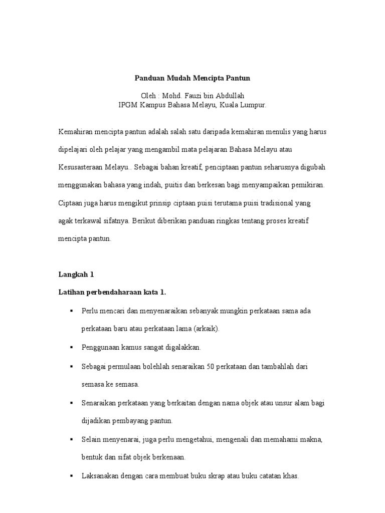 Panduan Mencipta Pantun