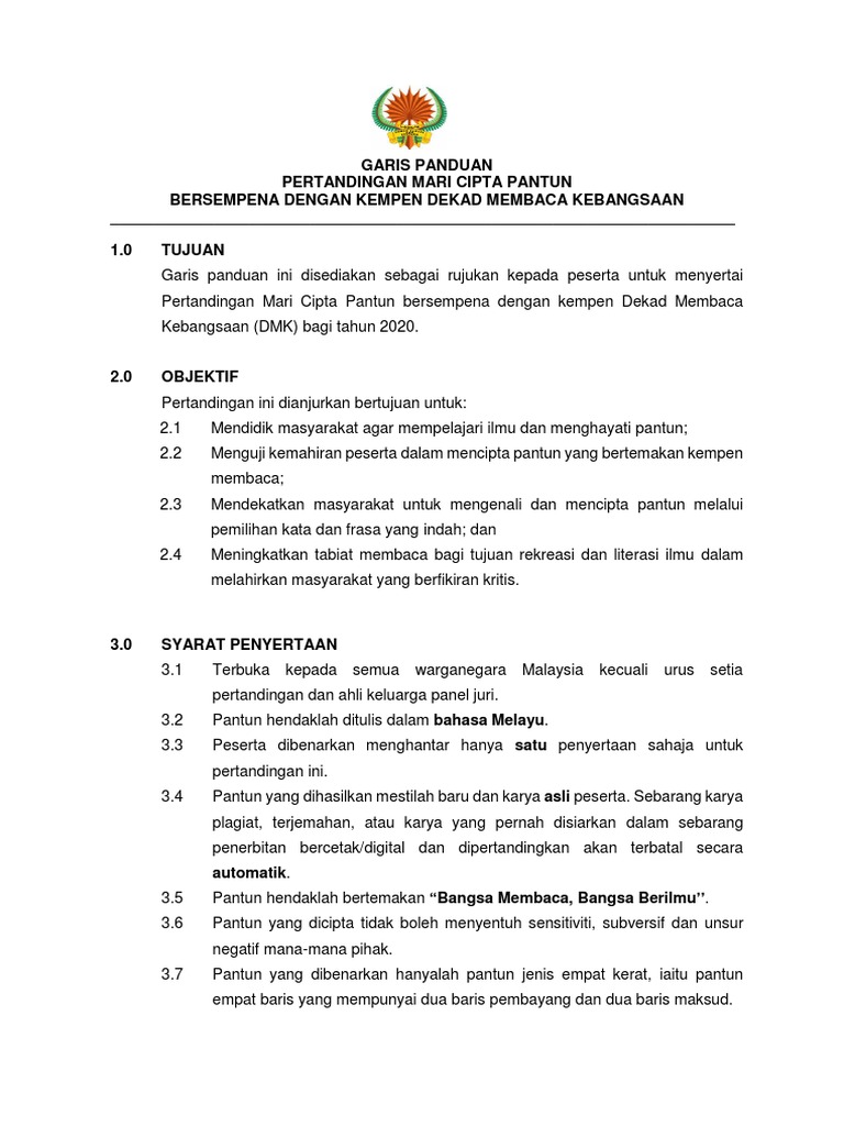 L5 Garis Panduan Pertandingan Mari Cipta Pantun Pdf